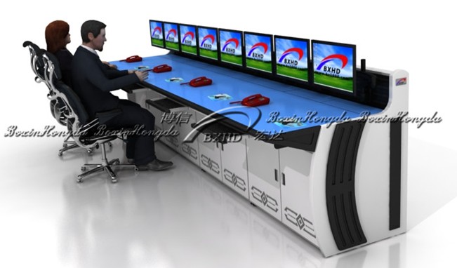 按統(tǒng)一標(biāo)準(zhǔn)進(jìn)行加工的控制臺,一般類似于直型,也就是橫排過去,多聯(lián)拼接到一起組成一個大型的安防平面控制臺!