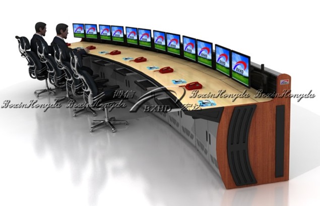 弧形平面控制臺一般作為豪華平面控制臺使用,因為弧形平面控制臺比較美觀,稍加修飾就可以變得非常的漂亮!一般應(yīng)用于演播中心、操作中心等地方!