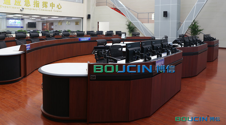 在人性化、實用性方面,博信控制臺結(jié)合人體工程學(xué),不僅在結(jié)構(gòu)上滿足人體生理的舒適感,還自主研發(fā)出坐站兩用、靈活升降的智能控制臺。舒適的辦公環(huán)境可解除高強度監(jiān)控工作人員的身心疲憊,提高工作效率。同時控制臺在設(shè)計之初就為打印機、傳真機、電話等設(shè)備,設(shè)計預(yù)留了的合理的呈放方式,保障了現(xiàn)場辦公高效、整潔,繁而不亂,為快節(jié)奏的信息搜集和傳遞提供了最佳辦公服務(wù)。在綠色環(huán)保方面,博信在控制臺生產(chǎn)過程中對設(shè)計和生產(chǎn)工藝流程上優(yōu)化創(chuàng)新,減少損耗,縮短工藝過程,用綠色環(huán)保來打造企業(yè)的品牌,為客戶營造身心舒暢的辦公環(huán)境。在造型設(shè)計方面,博信控制臺的線條從直線到曲線,從規(guī)范、整齊變化為流動、柔美、靈活,盡顯新時代的設(shè)計美學(xué);材料鋼木結(jié)合,體現(xiàn)出新時代的材質(zhì)美;顏色更豐富自然,與控制中心整體色調(diào)想統(tǒng)一協(xié)調(diào)。同時靈活多變的模塊化拼接工藝,對控制中心的空間變化和延展有很強的適應(yīng)性。