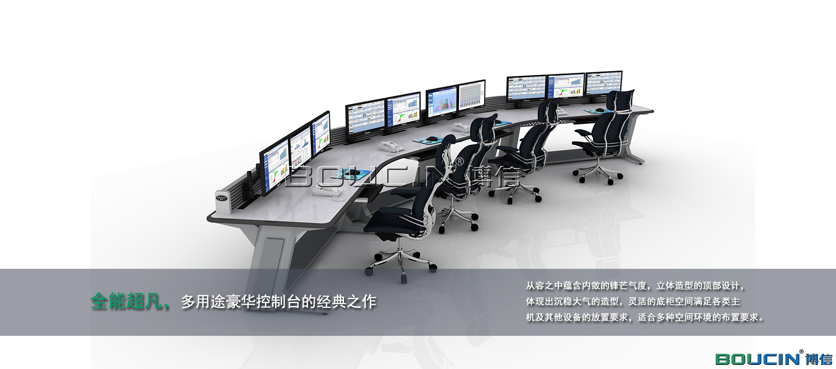 作為面向7天24小時(shí)高負(fù)荷運(yùn)作的指揮和控制中心的最高級(jí)別解決方案,博信控制臺(tái)提供了針對(duì)這類嚴(yán)苛環(huán)境采用了獨(dú)特的人機(jī)工程學(xué)設(shè)計(jì)體驗(yàn)。